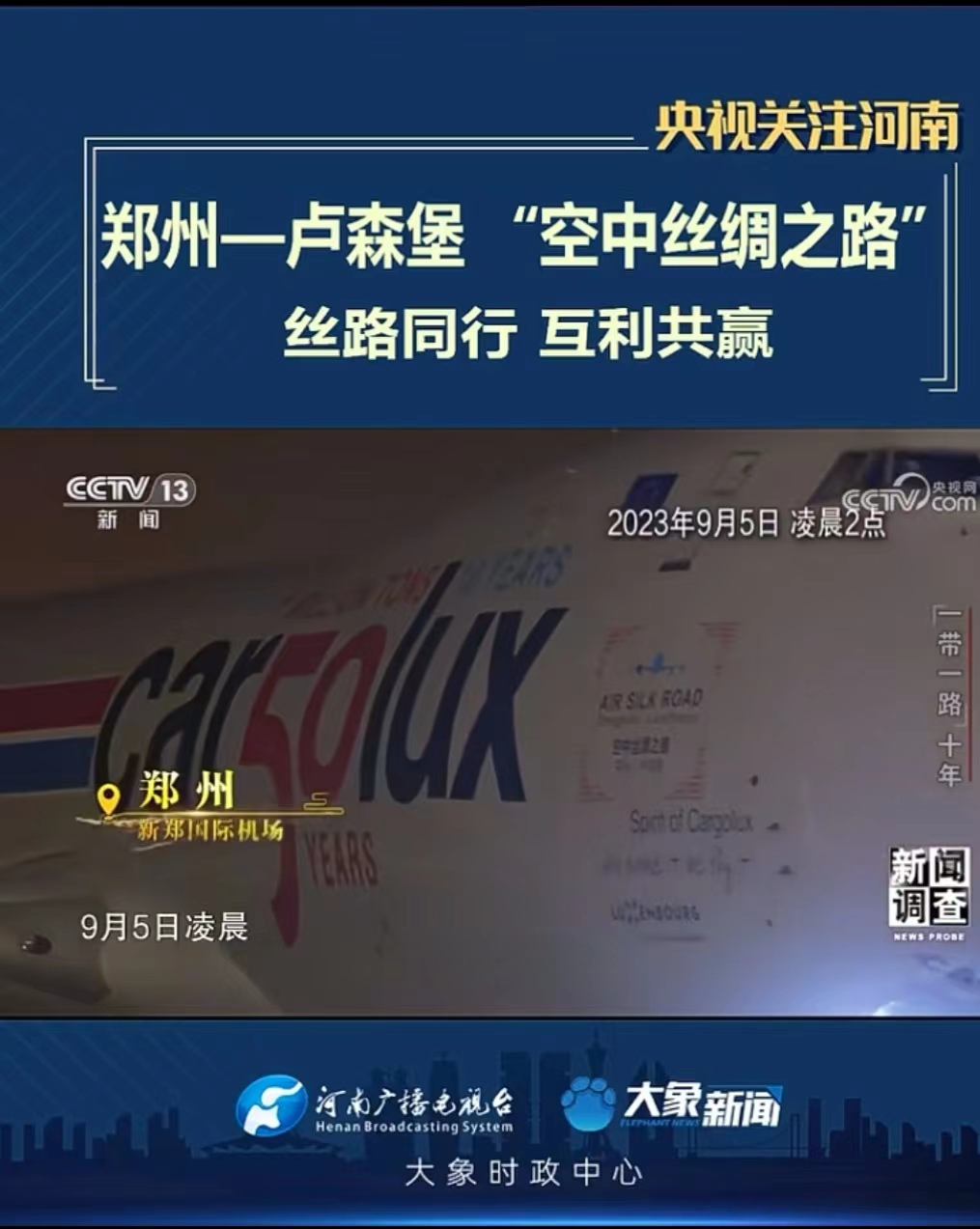 【央視關(guān)注河南】鄭州-盧森堡“空中絲綢之路” 絲路同行 互利共贏