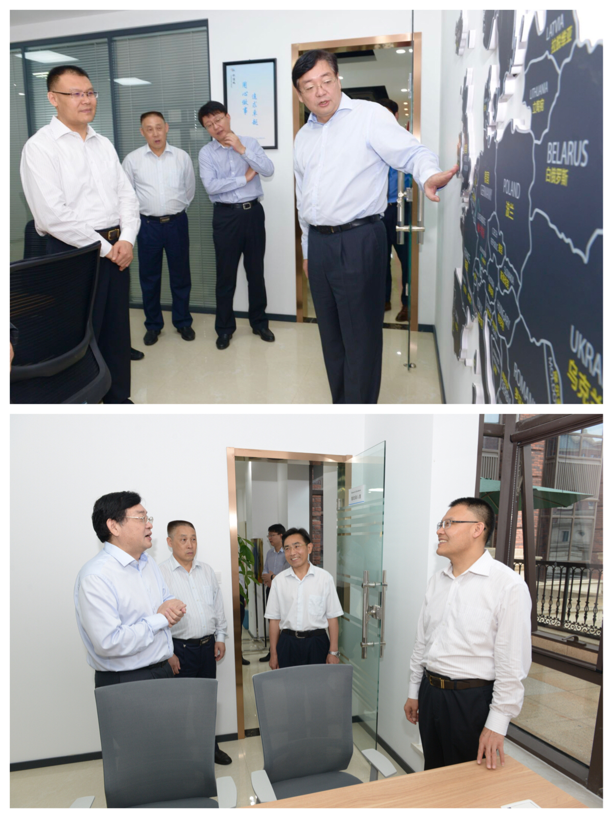 5月25日上午,省財政廳廳長王東偉帶領各處室負責人蒞臨河南航投調研,對盧森堡旅游簽證(鄭州)便捷服務平臺、盧森堡中心、航空服務中心等項目進行實地察詢,并與公司領導及相關業務負責人進行座談。河南航投黨委書記、董事長張明超,總經理、黨委副書記、副董事長劉建葆及公司領導班子其他成員參與調研、座談。