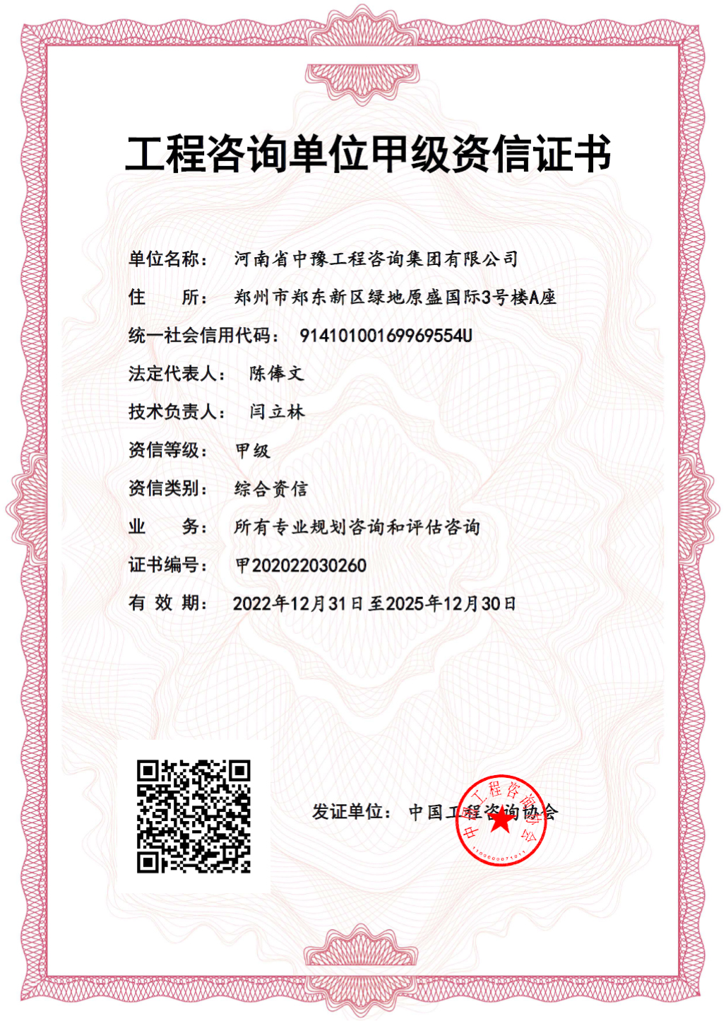 工程咨詢資信等級是衡量工程咨詢企業綜合實力的重要標志,也是工程咨詢企業發展的重要基石。甲級綜合資信可以作為所有專業規劃咨詢和評估咨詢業務能力的參考。目前,中豫咨詢集團已獲得工程咨詢單位甲級綜合資信和7個甲級專業資信,企業綜合實力邁上新臺階。