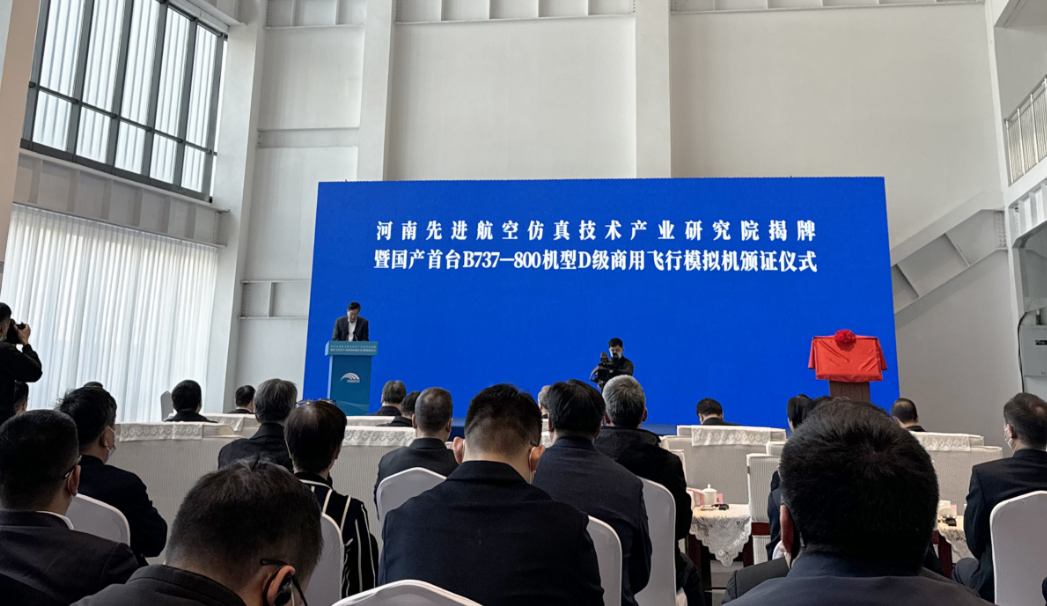 11月26日,河南先進(jìn)航空仿真技術(shù)產(chǎn)業(yè)研究院揭牌暨國(guó)產(chǎn)首臺(tái)B737-800機(jī)型D級(jí)商用飛行模擬機(jī)頒證儀式在河南航投航空培訓(xùn)中心舉行。省委書(shū)記樓陽(yáng)生出席并講話。樓陽(yáng)生為河南先進(jìn)航空仿真技術(shù)產(chǎn)業(yè)研究院揭牌。中國(guó)工程院院士趙沁平受聘擔(dān)任研究院專家技術(shù)委員會(huì)主任。中國(guó)商用飛機(jī)有限責(zé)任公司黨委書(shū)記、董事長(zhǎng)賀東風(fēng),省領(lǐng)導(dǎo)孫守剛、陳星、安偉、劉尚進(jìn)出席。